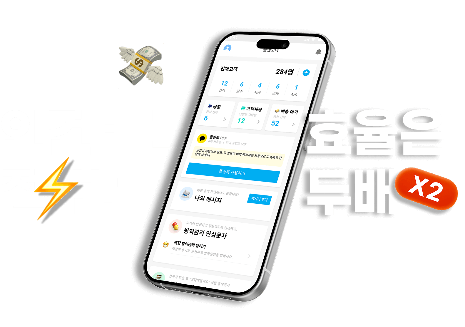 플랜오더는 견적·발주·시공·결제·A/S 진행상황을 하나의 메인 대시보드에 상태별로 정리해 보여줘서 하루 일정과 업무 우선순위를 쉽게 파악할 수 있습니다. 이제 감이 아닌 데이터로 매장을 운영하세요.